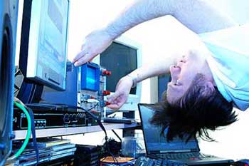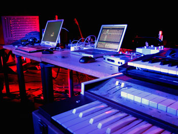 Live-Visuals arbeitet, unterstütz durch seine eigene Software und die